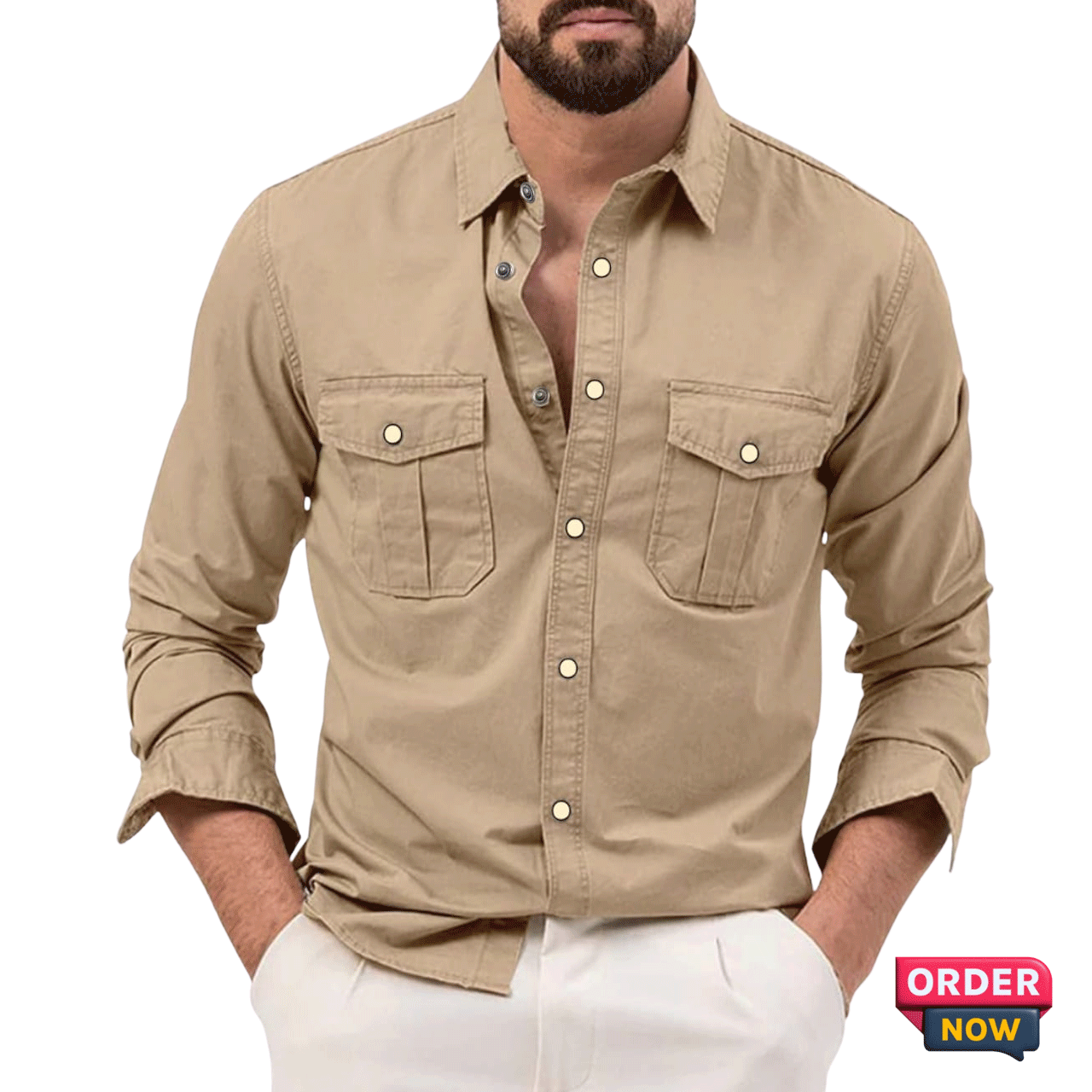 1 Pcs Twil Double Poket Snap Button – Khaki
