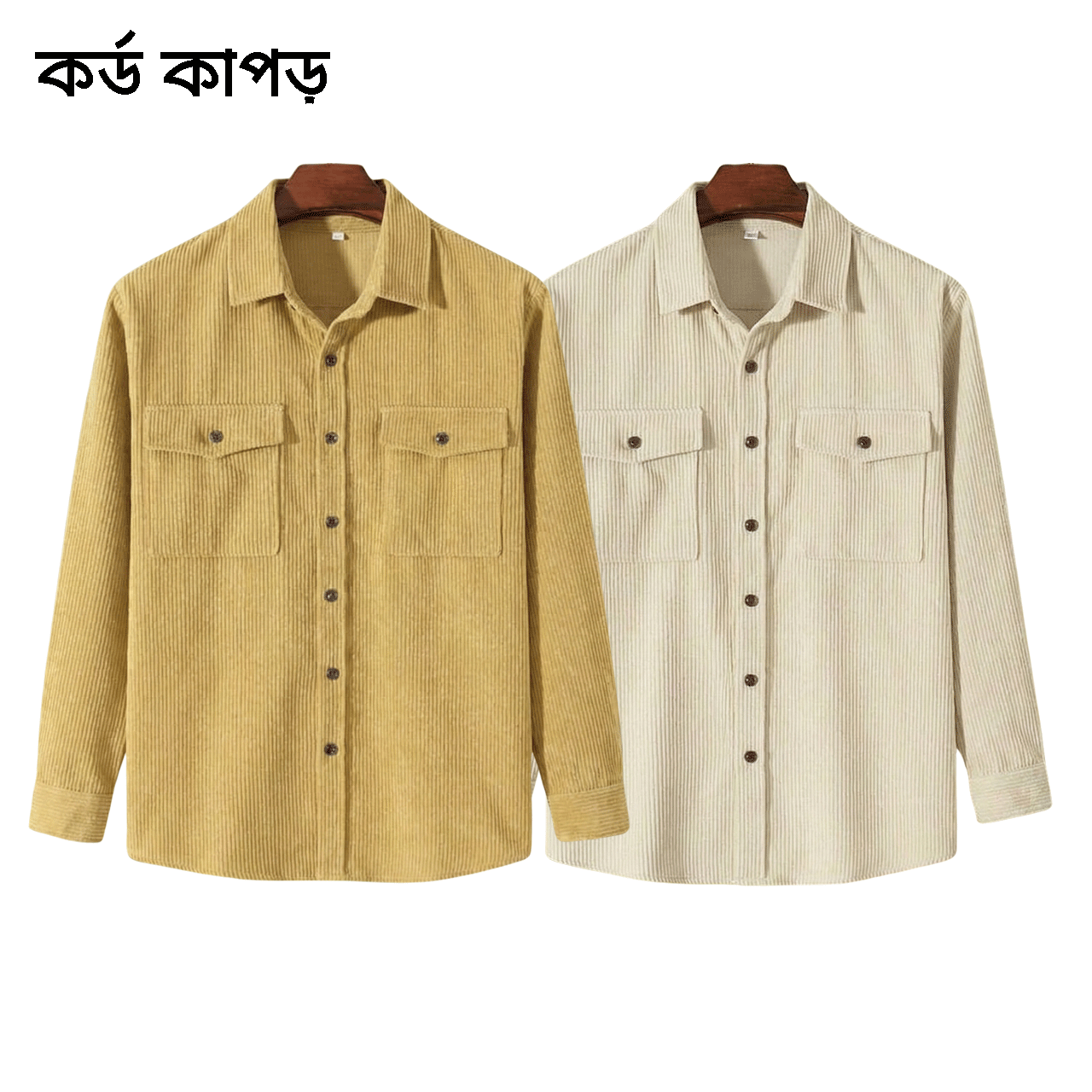 2 Pcs Cord Full Sleeve Shirt – Golden+Cream