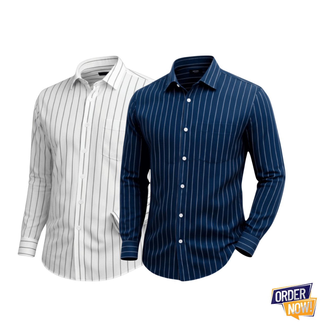 2 Pcs Stripe Full Sleeve Shirt- WhiteSmall+NavySamall