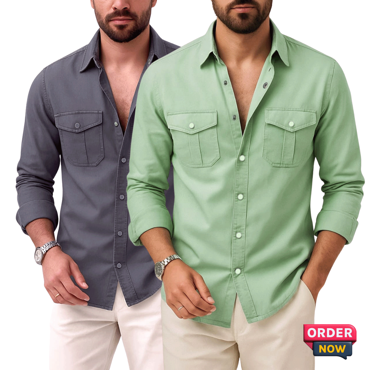 2 Pcs Kaizar Half Sleeve Shirt- Tama-+-Ash